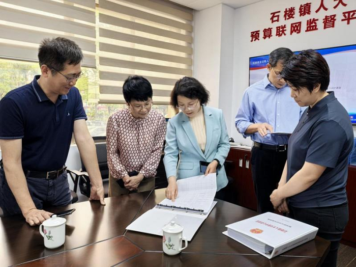 调研组首先抵达石楼镇人大代表中心联络站,察看了工作制度落实情况及各项工作台账记录,深入了解石楼镇人大工作的基本情况、代表履职概况、预算联网监督平台运用成效,以及全过程人民民主感知点建设规划细节等。